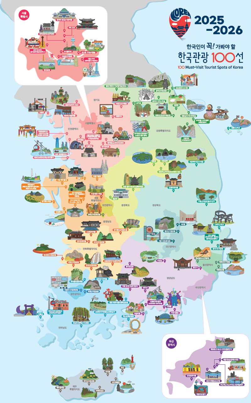 매년 한국관광공사는 국내외 관광객들에게 사랑받는 명소를 중심으로 '한국관광 100선'을 발표합니다. 2025-2026 한국관광 100선은 자연, 역사, 문화, 체험 등 다양한 테마를 아우르며, 대한민국의 매력을 한눈에 보여주는 관광지들로 구성되었습니다. 이번 리스트는 전국 17개 시도의 대표 명소를 선정해, 그 지역만의 독특한 매력을 담고 있습니다.