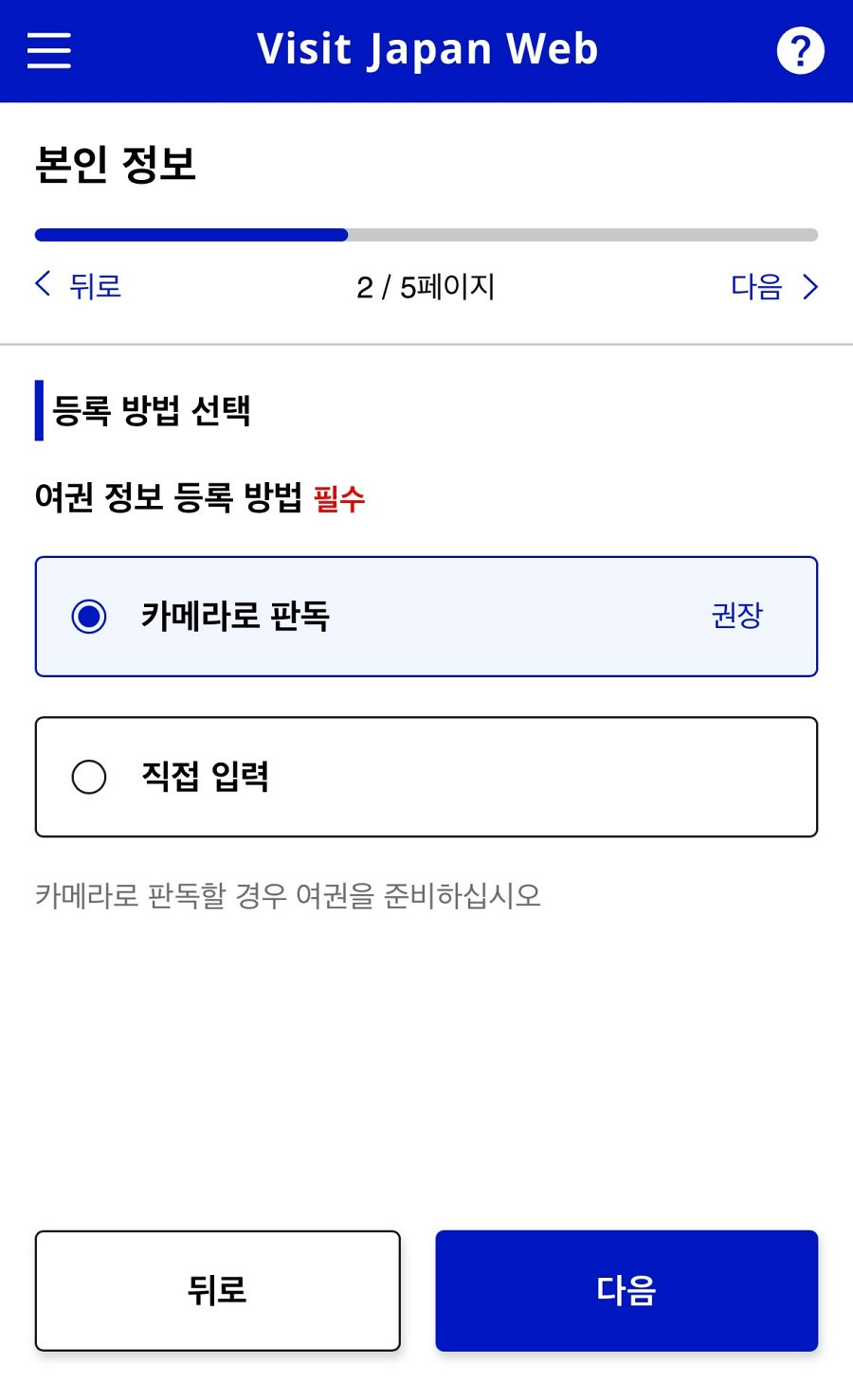 • 동반자 정보를 함께 입력하면 공항에서 더 빠르게 입국할 수 있습니다.